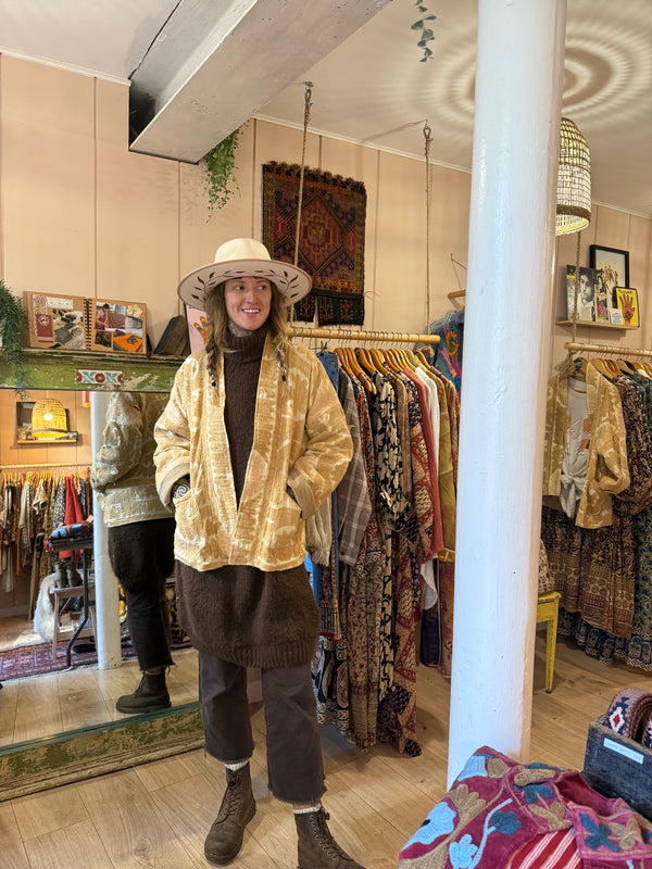 This jacket is like wearing a gift of gold from the Magi with a sprinkling of desert rose. It feels so luxurious, does it turn heads? I don’t know because I’m too busy admiring it myself 🤩