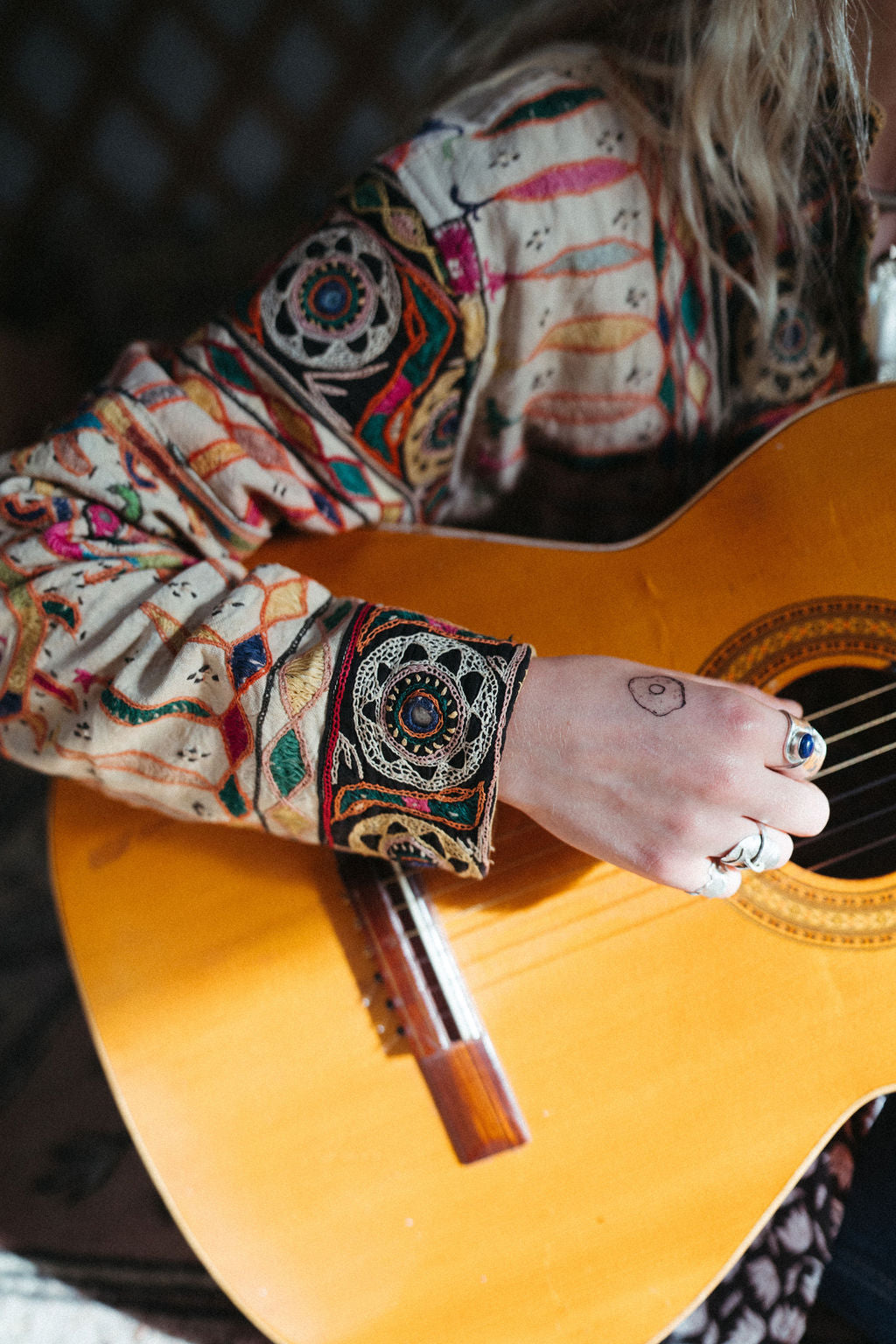 These jackets carry stories of women who have embroidered for generations, weaving devotion and artistry into every thread. With mirror-work that catches the light like desert sun and colour that holds the soul of India, each piece is completely unique - no two will ever be the same.
