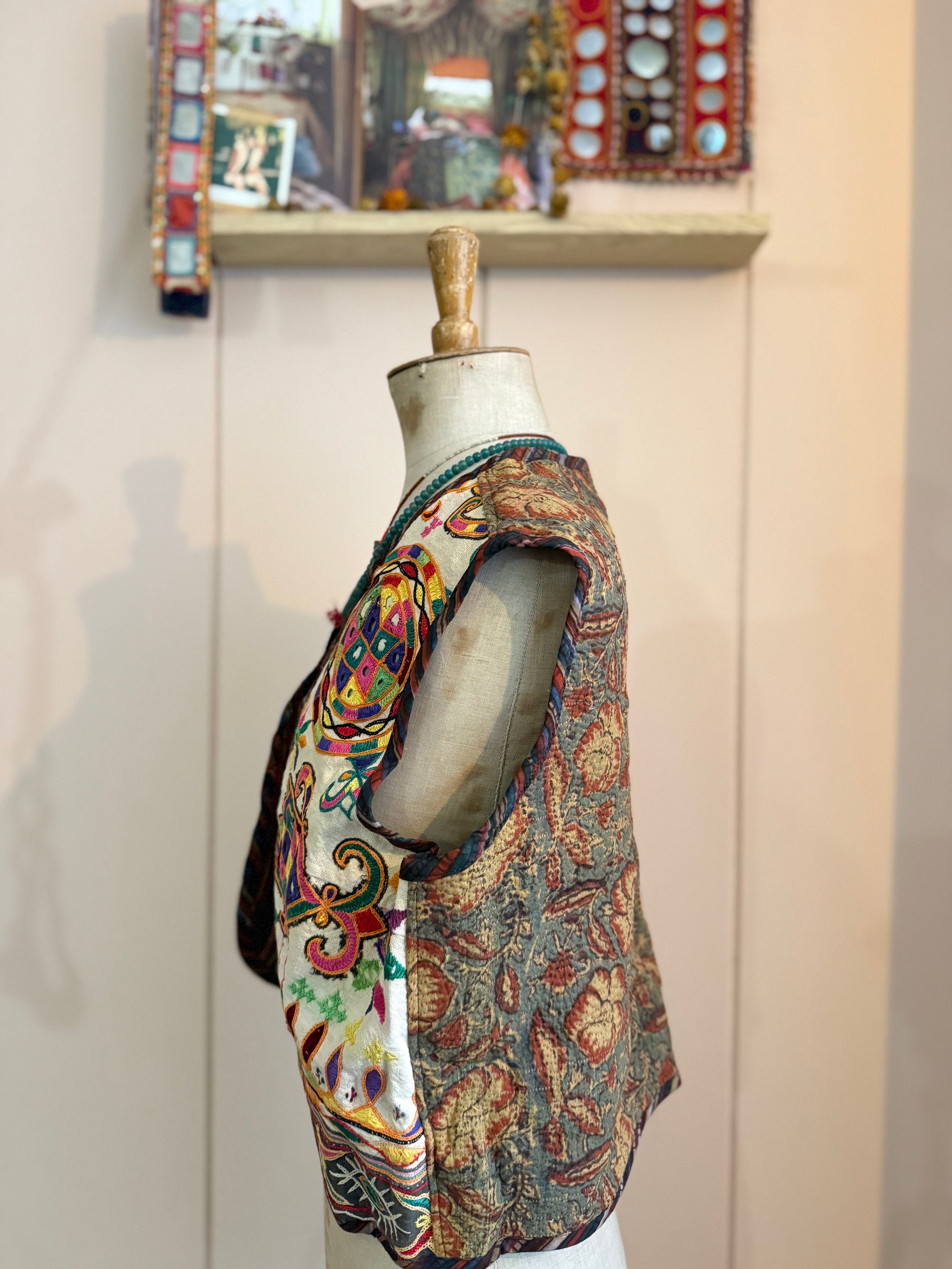 Please note: These waistcoats are crafted from vintage, hand-embroidered fabrics that have lived many lives before finding their way to you. Small marks, fading, and tiny imperfections are part of their story, traces of time that make each one beautifully and perfectly imperfect.
